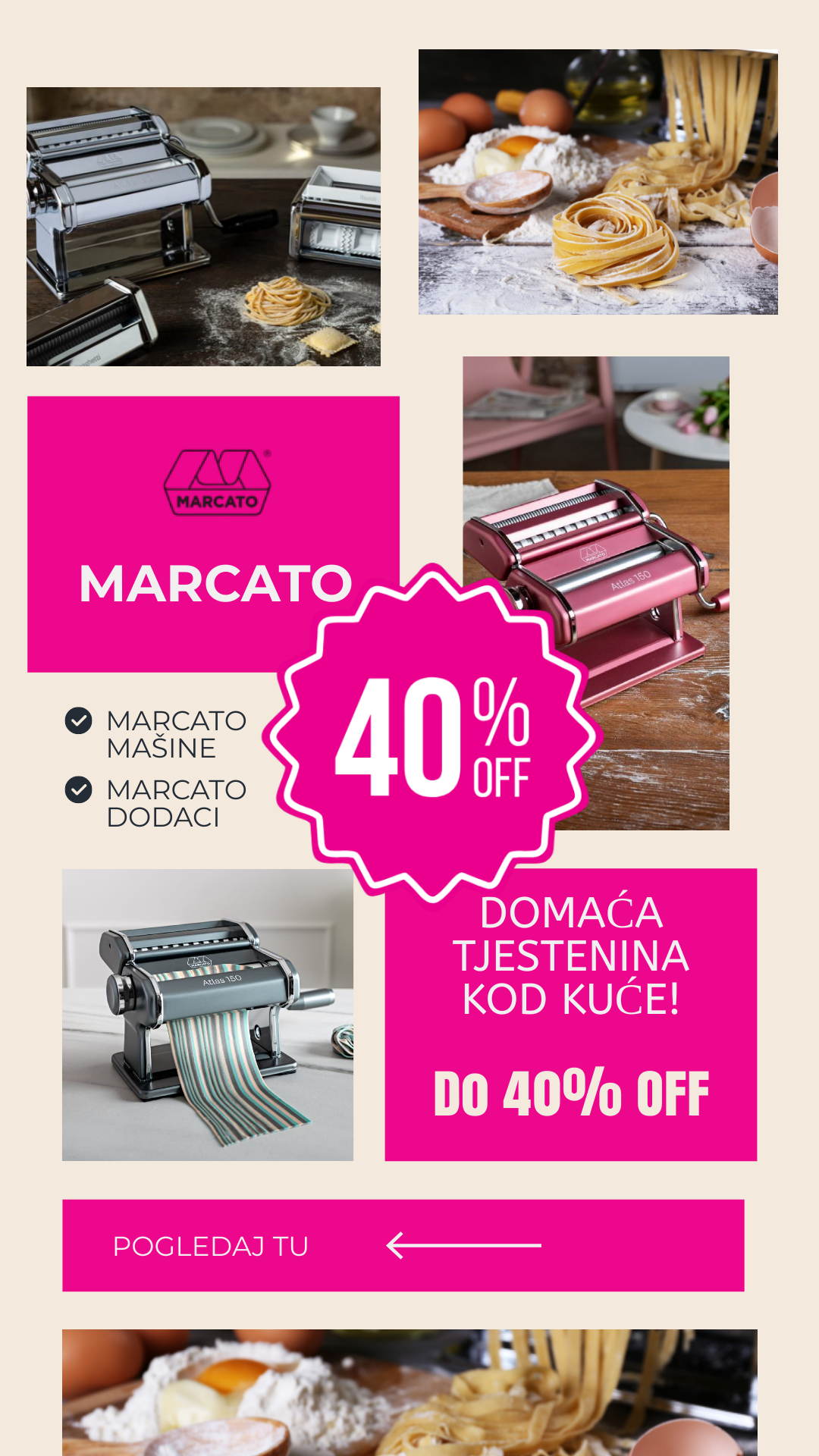 MARCATO ATLAS 150 mašine za tjesteninu osim što olakšavaju izradu tjestenine, daju mogućnost pripreme raznih oblika, pa tako možete izraditi tanje ili deblje re...