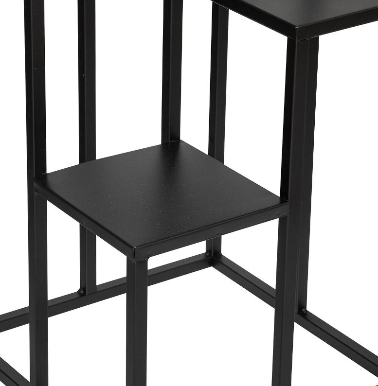 Dodajte stil i funkcionalnost svom prostoru uz elegantno postolje za biljke minimalističkog dizajna. Crni metalni okvir visine 87 cm i kvadratne osnove 36 × 36 cm lako se uklapa u različite prostore bez narušavanja estetike. Četiri odvojena mjesta za teglice omogućuju dinamičan raspored biljaka, stvarajući vizualno privlačan zeleni kutak. Zahvaljujući otvorenom dizajnu, sve biljke ostaju lako dostupne za njegu, a čvrsta metalna konstrukcija pruža stabilnost i dugotrajnost. Izvrsno se uklapa u interijere uređenjem u industrijskom, skandinavskom ili boho stilu, te se može koristiti i kao dekorativna pregrada.