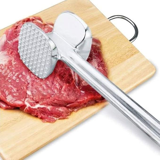 Bat za meso izrađen od kvalitetne aluminijske legure, čvrst, izdržljiv i jednostavan za korištenje. Dizajniran je za ravnomjerno omekšavanje mesa poput govedine, teletine, svinjetine i pilećih prsa.
