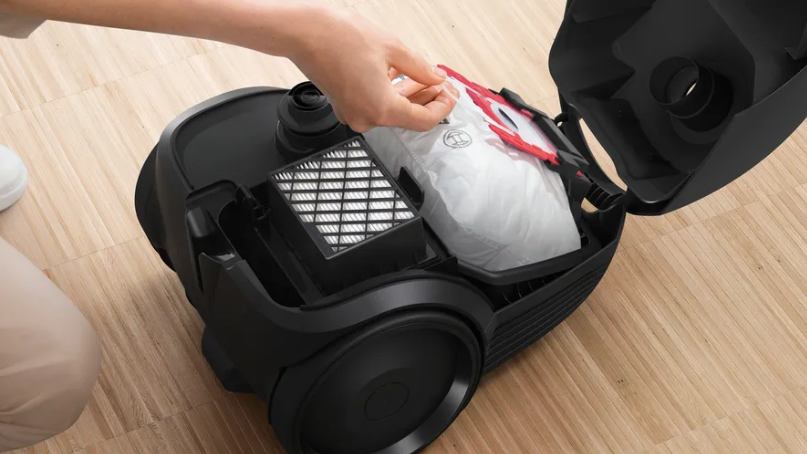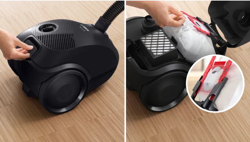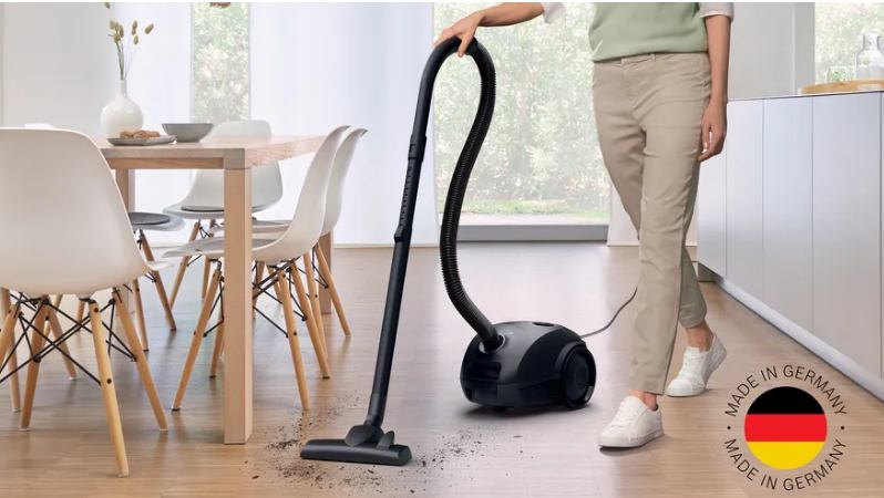 Opis proizvoda: Praktičan i lagan usisavač s vrećicom u elegantnoj crnoj boji. Zahvaljujući automatskom namatanju kabla i operativnom rasponu od 8 metara, omogućuje jednostavno i učinkovito čišćenje. Stabilnost osiguravaju dva velika kotača i jedan upravljački valjak, dok kapacitet vrećice od 3,5 litara pruža dovoljno prostora za prašinu i nečistoće.
