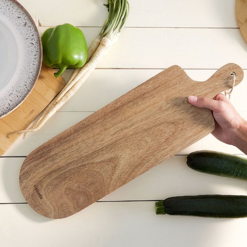 Daska SJAL MANGO iz kolekcije BASIC pogodna je za posluživanje sireva, suhomesnatih proizvoda, predjela i drugih manjih zalogaja. Zahvaljujući kompaktnim dimenzijama lako se uklapa na stol, a prirodni izgled drveta doprinosi toplini i estetici prostora. Praktična ručka i špaga omogućuju jednostavno rukovanje i odlaganje.