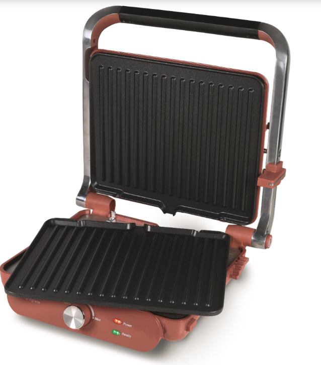 Električna Grill TOGNANA snage 2000 W savršen je izbor za pripremu mesa, povrća i drugih jela s efektom roštilja. Zahvaljujući antiadherentnim, uklonjivim pločama od aluminija s teflonskim premazom, omogućuje jednostavno pečenje bez lijepljenja i lako čišćenje. Položaji ploča od 105° i 180° omogućuju klasično pečenje i potpuno otvaranje u barbecue poziciju. Ergonomska ručka, manici otporni na toplinu, posuda za skupljanje masnoće i beccuccio za ispuštanje sokova osiguravaju sigurnost i praktičnost. Uređaj je opremljen dvjema kontrolnim lampicama, zaštitom od pregrijavanja i protukliznim nožicama, a može se odložiti i u vertikalnom položaju radi uštede prostora.