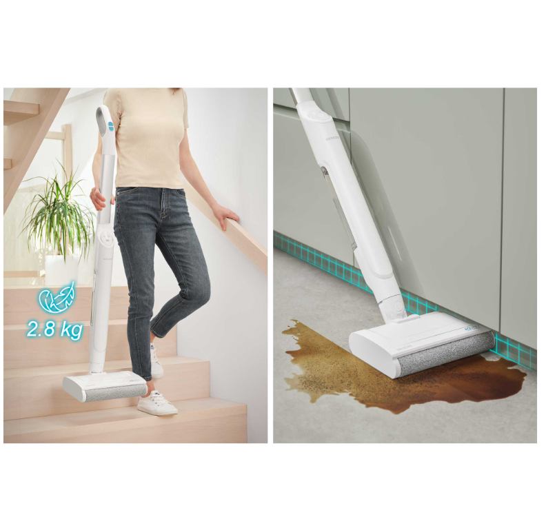 Ovaj električni mop omogućuje jednostavno čišćenje svih vrsta podova bez potrebe za stalnim namakanjem. Dovoljno je napuniti spremnik vodom, a uređaj se sam brine za čišćenje. Ima tri odvojiva spremnika—za čistu vodu, prljavu vodu i krute nečistoće—što osigurava učinkovito uklanjanje prljavštine. Lagan je za nošenje i upotrebu, a dugotrajna baterija pruža do 40 minuta rada bez prekida.