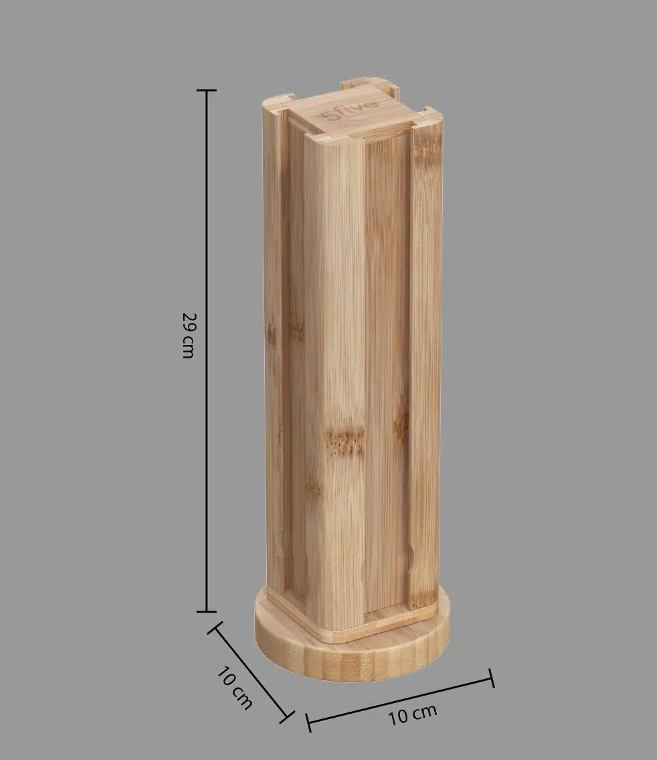 Praktična rotirajuća kutija za kapsule omogućuje uredno i pregledno odlaganje kapsula za kavu. Izrađena od prirodnog bambusa, unosi toplinu i prirodan izgled u svaki kuhinjski prostor. Zahvaljujući rotirajućem mehanizmu, kapsule su lako dostupne iz svih kutova, što olakšava svakodnevnu pripremu omiljenog napitka.
