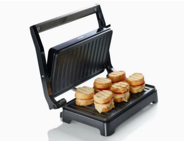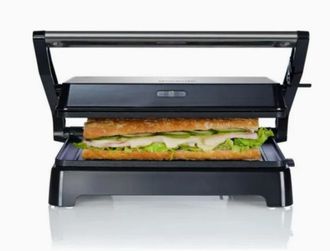 Njegove plutajuće šarke omogućuju prilagodbu različitim veličinama sendviča, a kompaktne dimenzije omogućuju vertikalno skladištenje, štedeći prostor u kuhinji. Lako se čisti i koristi, što ga čini praktičnim dodatkom za svaku kuhinju.