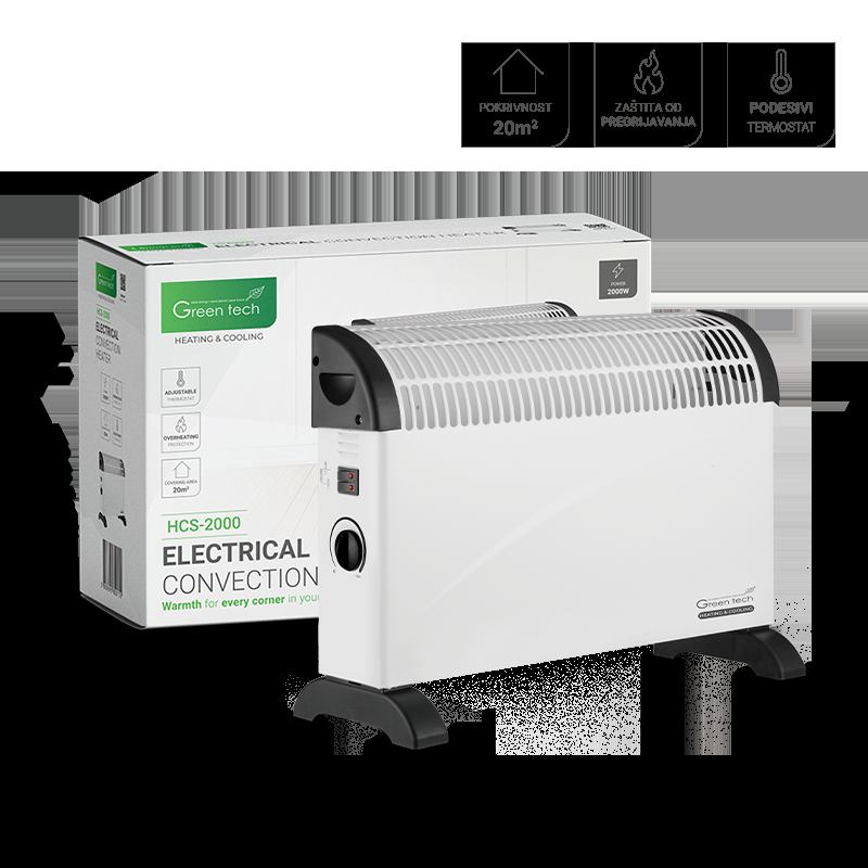 Konvektorska grijalica snage 2000 W s TURBO ventilatorom idealna je za brzo zagrijavanje prostorija do 20 m². Ima tri razine topline, mehaničku kontrolu termostata i sigurnosnu zaštitu od pregrijavanja. Prikladna za samostojeću ili zidnu montažu.