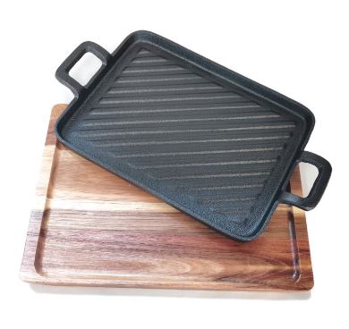 Grill King Cast Iron BBQ Grill Plancha s Integriranim Ručkama i Podloškom od Drva Agacije