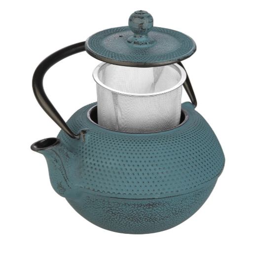 Ovaj prekrasan čajnik od lijevanog željeza dolazi s emajliranom unutrašnjošću i inox filterom za čaj. Njegov dizajn omogućava upotrebu na indukcijskim, električnim i plinskim površinama. S kapacitetom od 1200 ml, idealan je za pripremu veće količine vašeg omiljenog čaja.