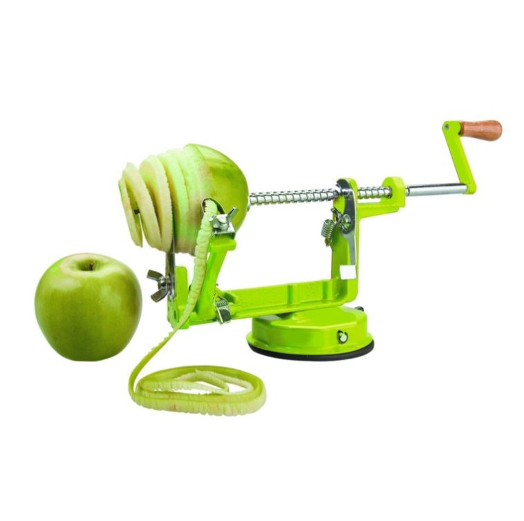 Savršen pomoćnik u kuhinji za brzo i jednostavno guljenje, rezanje i zarezivanje jabuka, krušaka i krumpira. Ovaj inovativni alat omogućuje odstranjivanje jezgre bez prepolovljavanja ploda, što ga čini idealnim za svakodnevnu upotrebu, posebno za osobe koje teško barataju nožem ili ručnim guljačima.