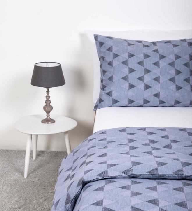 Jastučnica Traingle izrađena je od mekanog flanela koji pruža ugodan osjećaj tijekom korištenja. Materijal je 100% pamuk, što osigurava prozračnost i jednostavno održavanje. Jastučnica ima praktično kopčanje na zatvarač. Plava nijansa lako se uklapa u različite stilove uređenja spavaće sobe. Dimenzija jastučnice je 60×80 cm.