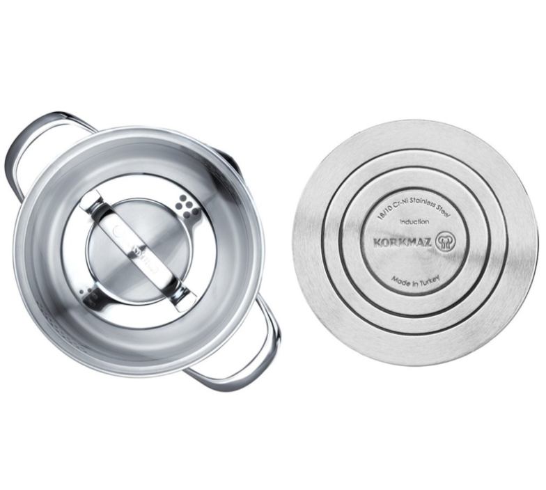 Lonac niski s poklopcem za iscjeđivanje, dimenzija 24×7 cm, kapaciteta 3,0 l. Izrađen od nehrđajućeg čelika 18/10 s poklopcem od visokokvalitetnog stakla. Posebno dizajniran poklopac omogućuje jednostavno pražnjenje lonca i ispuštanje pare tijekom kuhanja. Solar Base dno osigurava ravnomjerno provođenje topline, a vanjske površine su pažljivo polirane za dugotrajan sjaj.