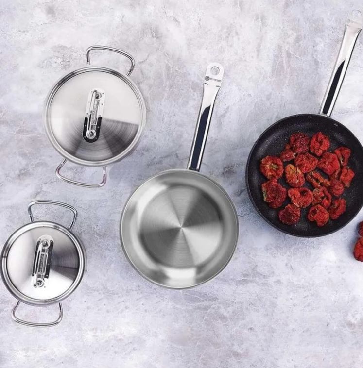 Posuda za umake s poklopcem, dimenzija 20×12 cm, kapaciteta 3,8 l. Izrađena od visokokvalitetnog nehrđajućeg čelika 18/10 (Cr-Ni), s dodatno debelom bazom od 8 mm i tehnologijom zarobljavanja topline koja omogućuje dugotrajno održavanje temperature. Posebno izrezane aluminijske površine na čeličnoj kapsuli osiguravaju dodatnu učinkovitost u provođenju topline, štedeći vrijeme i energiju. Ergonomske, nezapaljive ručke od nehrđajućeg čelika omogućuju sigurno i jednostavno rukovanje. Proline linija pretvara svakoga u profesionalnog kuhara – bilo da kuhate kod kuće ili u restoranu.