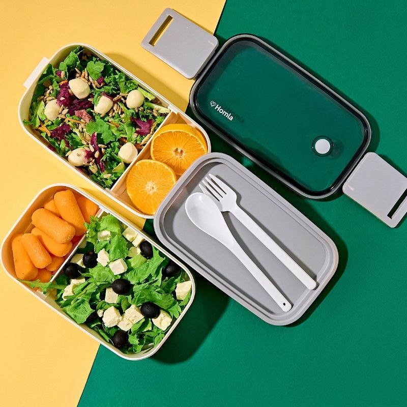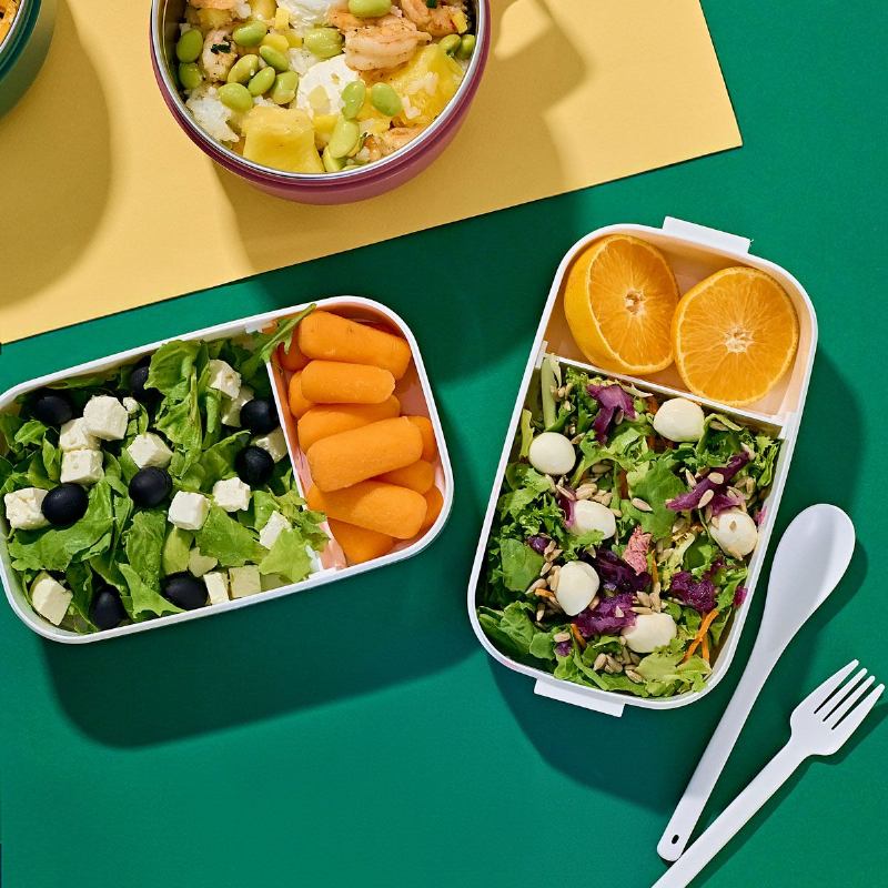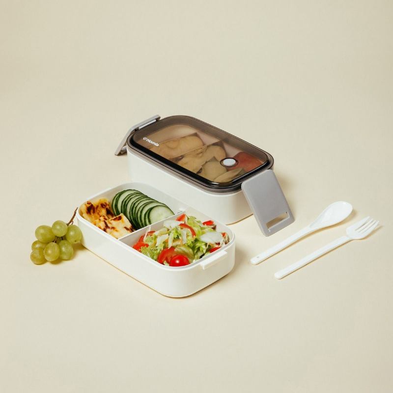 Dvostruki lunchbox LOENE podijeljen je u dvije odvojene komore za odvajanje različitih jela. U kompletu se nalaze žlica i vilica. Poklopac se zatvara na bočne kopče. Dimenzije su 12 × 22 × 6 cm, a ukupna zapremnina iznosi 1,4 l.