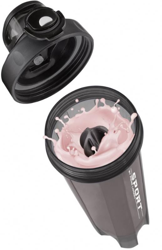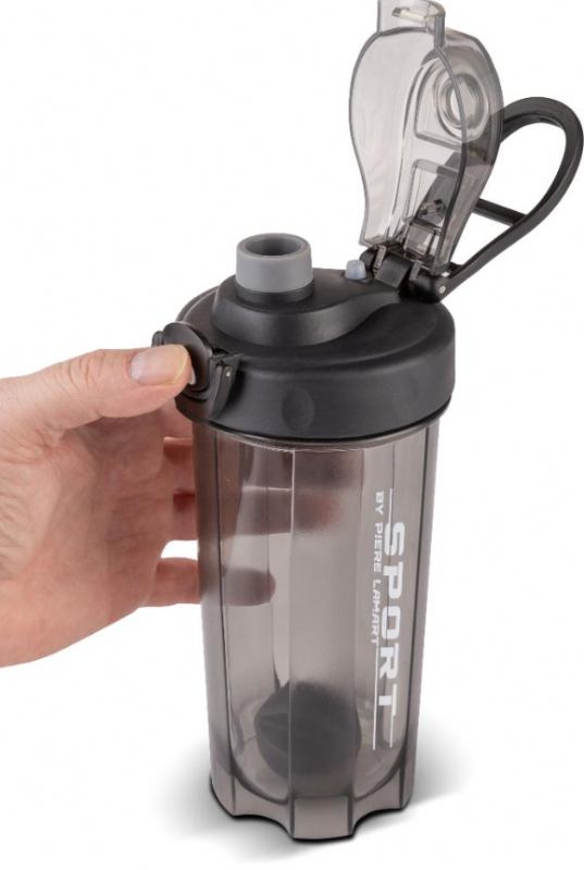 Sportska boca kapaciteta 600 ml izrađena je od tritana i plastike, što je čini laganom i praktičnom za vanjsku upotrebu. Zahvaljujući plastičnoj kuglici u unutrašnjosti, idealna je za miješanje proteinskih napitaka, dodataka prehrani u prahu, smoothija i voćnih sokova. Silikonska brtva na čepu sprječava nenamjerno otvaranje, osiguravajući sigurno korištenje.