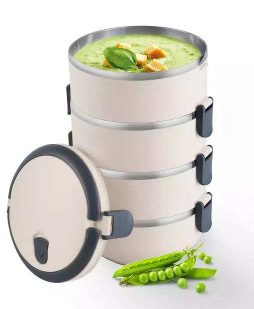 Hermetički i vodootporni poklopac s ugrađenom silikonskom brtvom sprječava curenje i održava svježinu hrane. Spremnik je pogodan i za čuvanje hrane u hladnjaku, pružajući dodatnu praktičnost za kućnu upotrebu. Poklopac sadrži praktičnu ručku i aroma ventil, omogućujući jednostavno nošenje i dugotrajno očuvanje okusa hrane.
