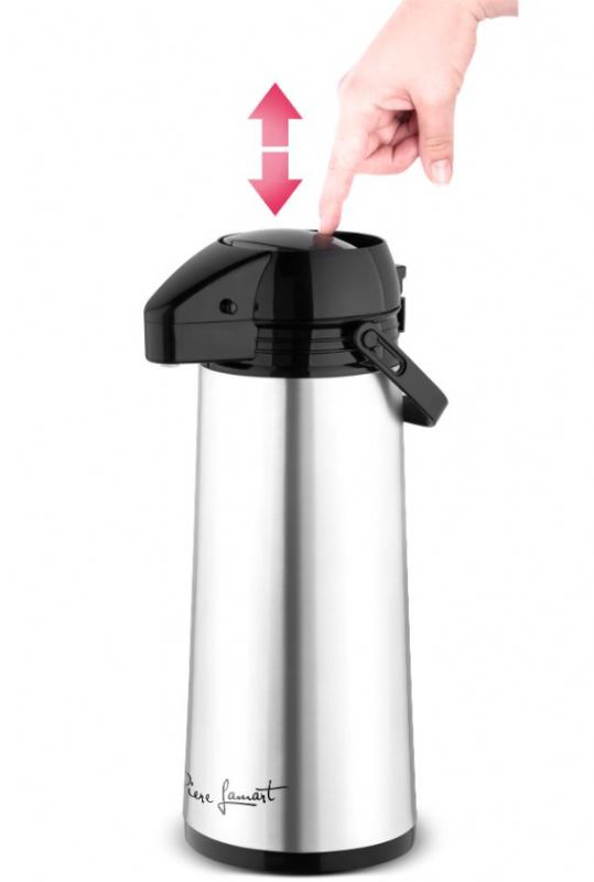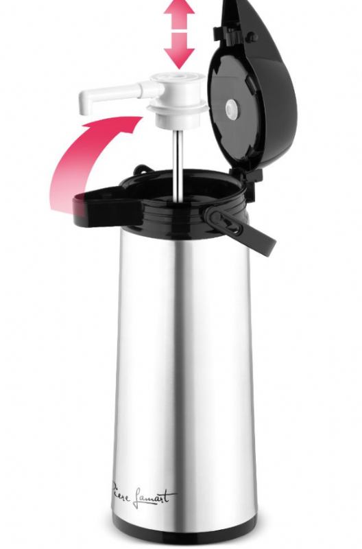 Boca je opremljena pumpom za doziranje, omogućujući jednostavno i praktično točenje napitaka. Elegantna ručka pruža udoban hvat, dok praktični čep osigurava sigurnost pri transportu i skladištenju.