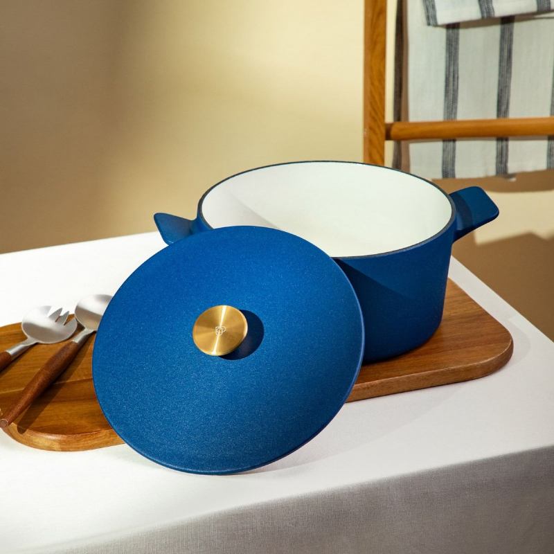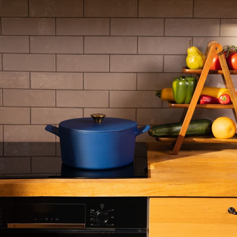 Namjena: Lonac zapremine 5 litara savršen je za pripremu obiteljskih obroka, posebno jednoglončanih jela. Pogodan je za sve vrste kuhinja – plinske, električne, keramičke, indukcijske – kao i za pećnicu. Debelo dno omogućuje ravnomjerno raspoređivanje topline, čime se poboljšava okus pripremljenih jela.