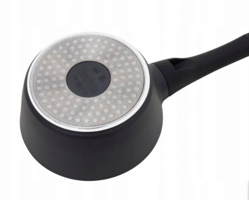 Lonac izrađen od kvalitetnog aluminija s inovativnom keramičkom neprianjajućom oblogom GREBLON C3 njemačke tehnologije. Zahvaljujući masivnom dnu i debelim stijenkama, brzo i ravnomjerno se zagrijava, dok posebna konstrukcija dna učinkovito provodi i zadržava toplinu.