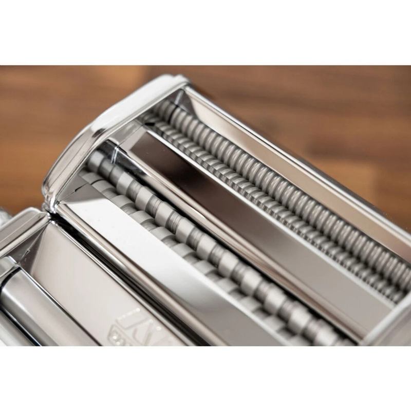 Marcato Atlas+ najnovija je verzija legendarnog aparata za pripremu domaće tjestenine, proizvedena u Italiji. Na prednjoj strani ima gravirano "Atlas+", što potvrđuje originalnost i kvalitetu proizvoda.