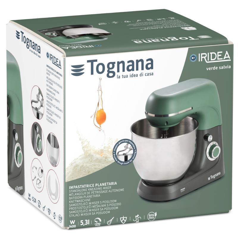 Mikser Tognana Iridea Verde kapaciteta 5,3 litara i snage 1400 W idealan je za pripremu različitih tijesta i miješanje sastojaka s preciznošću i lakoćom. Njegov moderan dizajn u zelenoj boji uklopit će se u svaku kuhinju, a visoke performanse omogućuju jednostavno rukovanje.