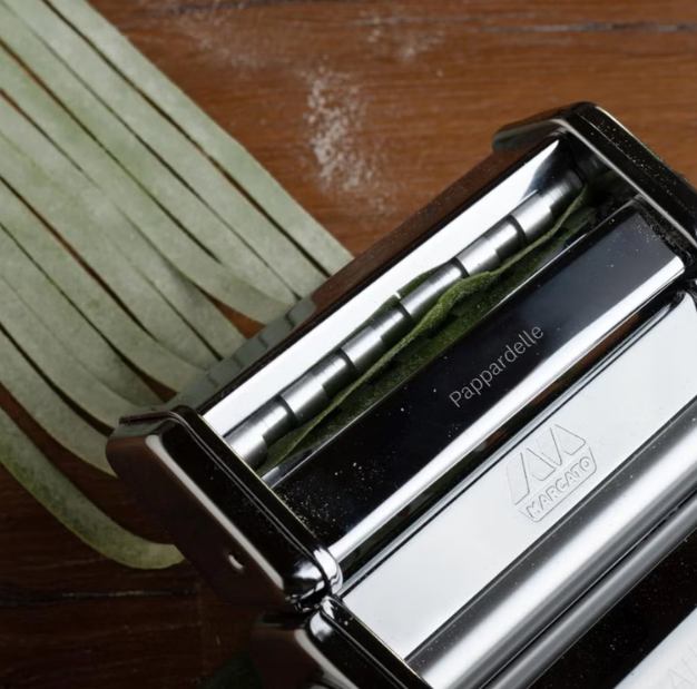 Marcato Multipast je sveobuhvatan set za izradu domaće tjestenine, idealan za sve ljubitelje kulinarstva. Uključuje aparat Atlas 150 i tri dodatna nastavka, s kojima možete pripremiti čak šest različitih oblika tjestenine: lazanje, fettuccine, tagliolini, špagete, pappardelle i raviole.