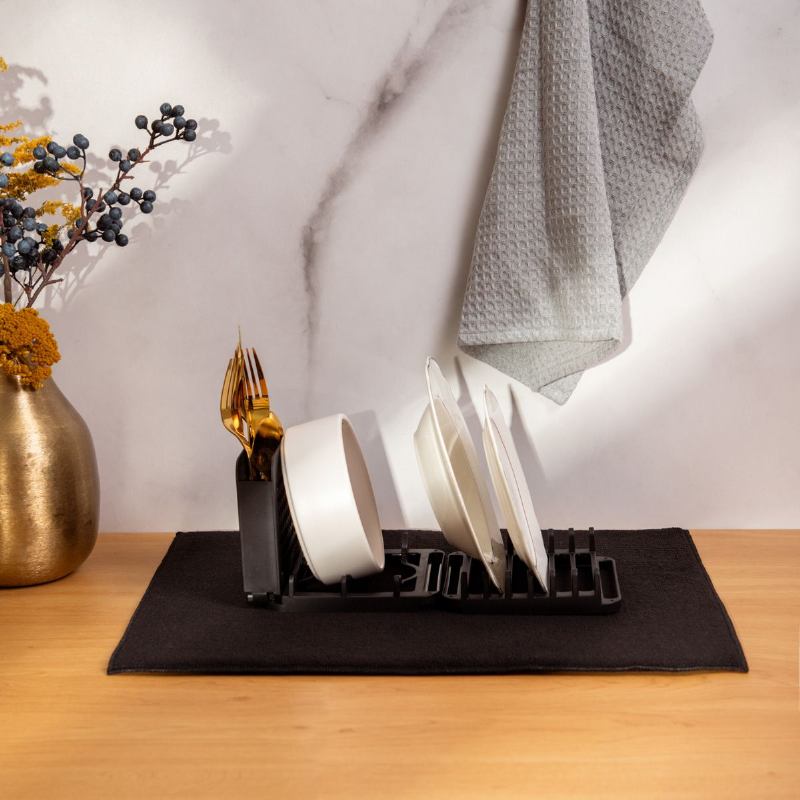 Ocijerđivać donosi u crnoj boji i elegantnoj konstrukciji, savršeno se uklapa u suvremene interijere. Prostrana površina omogućuje organizirano sušenje tanjura, čaša i pribora za jelo, dok sklopivi dizajn olakšava spremanje kada nije u upotrebi.
