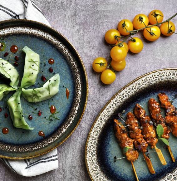 Ovalni Piano tanjur dimenzija 36 x 26 cm izrađen je od visokokvalitetnog porculana. Ovaj tanjur kombinira funkcionalnost i eleganciju, savršen za posluživanje raznih jela. Njegov sofisticirani dizajn u plavo-smeđoj kombinaciji boja unosi jedinstven estetski dodir vašem stolu, čineći ga idealnim za svečane prigode i svakodnevne obroke. Kvalitetan materijal osigurava dugotrajnost i otpornost, dok elegantan izgled omogućava lako uklapanje u svaki stil postavljanja stola.