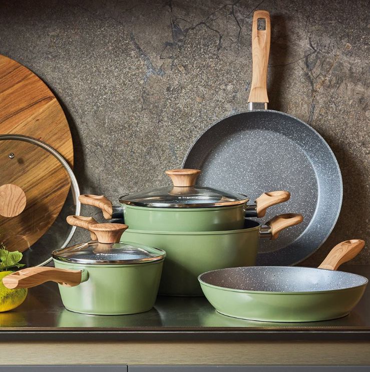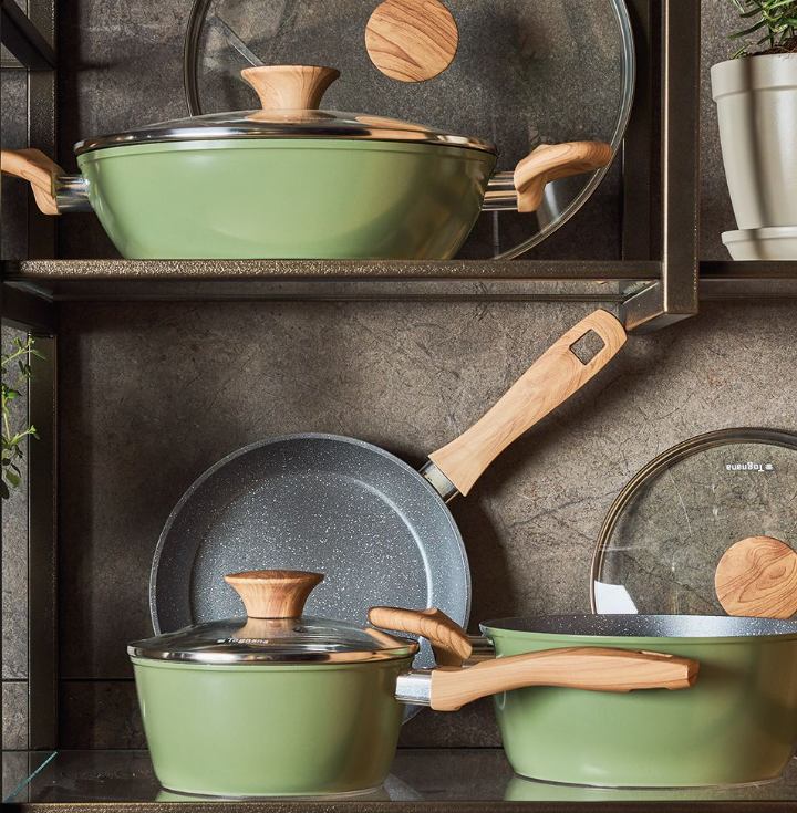 Zahvaljujući visokokvalitetnom aluminiju, lonac pruža ravnomjernu distribuciju topline, što osigurava optimalne rezultate pri kuhanju. Njegov zeleni premaz dodaje estetski dodir, čineći ga savršenim dodatkom svakoj kuhinji.