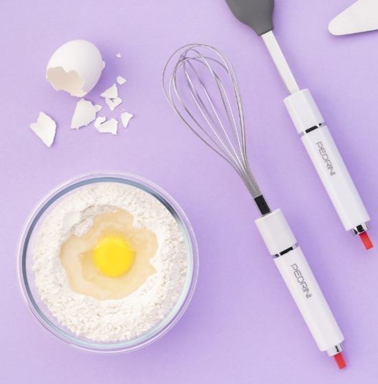 Opis: Pedrini Large pjenjača je idealna za svakodnevnu uporabu u kuhinji. Opremljena je crvenom praktičnom silikonskom udicom koja omogućava jednostavno spremanje. Izrađena je od visokokvalitetnih materijala koji osiguravaju dugotrajnost i otpornost. Pjenjača je savršena za miješanje i pjenjenje sastojaka, pružajući izvrsne rezultate svaki put.