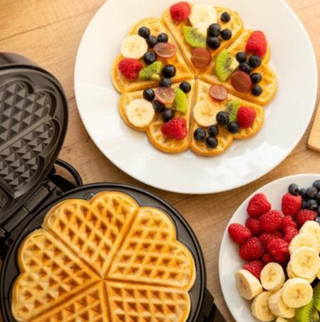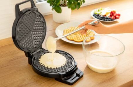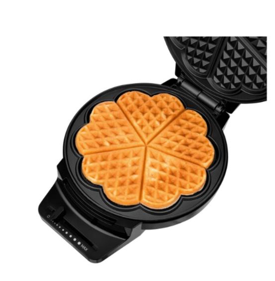 Uređaj za pripremu vafla izrađen od visokokvalitetnog nehrđajućeg čelika osmišljen je kako bi svakoj kuhinji donio kombinaciju funkcionalnosti i estetskog dizajna. Omogućuje pripremu 5 ukusnih vafla u obliku srca, dok podesiva postavka temperature pruža savršenu kontrolu za svaki recept. Njegove praktične funkcije i sigurnosne značajke čine ga jednostavnim za korištenje i održavanje.
