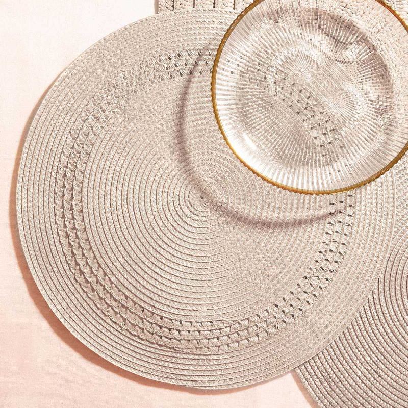 Podmetač u sivoj boji savršen je dodatak svakom stolu – bez obzira na oblik plohe. Zahvaljujući okruglom obliku i dekorativnoj pletenoj strukturi, unosi stil i toplinu u svakodnevne obroke, ali i svečane prigode. Promjer od 38 cm omogućuje savršeno postavljanje tanjura i pribora, dok istovremeno štiti površinu stola od topline, ogrebotina i mrlja.