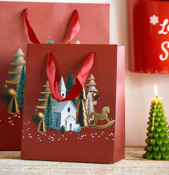 Dekorativna poklon vrećica s božićnim motivima savršen je izbor za blagdansko darivanje. Zahvaljujući praktičnim dimenzijama, pogodna je za pakiranje manjih poklona, slastica ili dekorativnih predmeta. Božićni uzorci unose veselu atmosferu i daju daru poseban šarm.