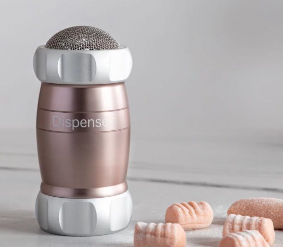 Marcato Design Line dozator spaja stil i funkcionalnost u jednom kuhinjskom alatu. Idealan je za ravnomjerno posipanje svježe tjestenine brašnom ili za dekoriranje slastica šećerom u prahu, kakaom i začinima. Zahvaljujući preciznoj izradi i kvalitetnim materijalima, dozator je izdržljiv, higijenski i jednostavan za korištenje. Njegov elegantan dizajn čini ga i dekorativnim dodatkom svakoj kuhinji.