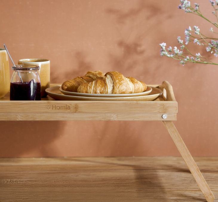 Slobodno jutro provedeno u krevetu postaje još ugodnije uz doručak poslužen na taci BAMBOU. Zahvaljujući sklopivim nogicama, posluživanje je jednostavno, a uživanje u obroku izuzetno udobno. Proizvod ne jamči odsutnost mrvica u posteljini, ali jamči praktičnost i eleganciju.
