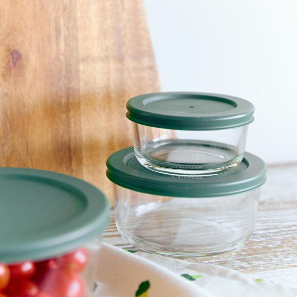 Staklena zdjelica sa poklopcem u zelenoj boji savršen je za organizaciju doma – od kuhinje do kupaonice. Zahvaljujući elegantnom okruglom obliku i hermetičkom poklopcu, idealan je za čuvanje suhih namirnica poput brašna, šećera, orašastih plodova, ali i za sitnice poput kozmetike, pribora za pisanje ili nakita. Kombinacija prozirnog stakla i modernog poklopca čini ga funkcionalnim i dekorativnim dodatkom svakom prostoru.