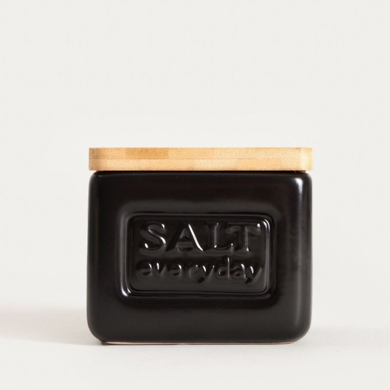 Posudica SYLAN u klasičnoj crnoj boji savršen je izbor. Izrađena od izdržljive keramike i opremljena poklopcem od bambusovog drva, štiti začine od vlage i istovremeno unosi dozu stila u vašu kuhinju. Moderan dizajn lako se uklapa u različite interijere.
