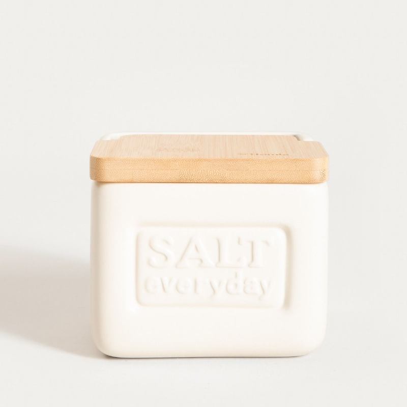 Posudica SYLAN predstavlja elegantno i funkcionalno rješenje za pohranu soli u kuhinji. Izrađena od izdržljive keramike u profinjenoj ecru nijansi, s praktičnim poklopcem od bambusovog drva, osigurava svježinu začina i jednostavan pristup tijekom kuhanja. Zahvaljujući neutralnoj boji i jednostavnom dizajnu, lako se uklapa u svaki stil uređenja.