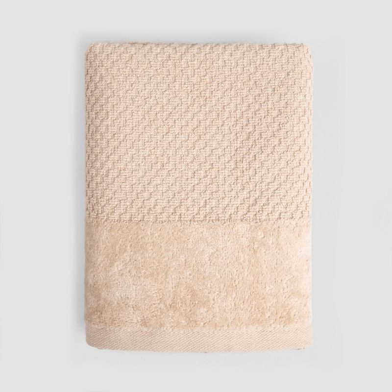 Ručnik NASIA u elegantnoj bež nijansi kombinira klasičan dizajn s praktičnim dimenzijama, čineći ga savršenim dodatkom za svaku kupaonicu. Izrađen od visokokvalitetne pamuka, pruža mekoću, ugodnost i izvrsnu upojnost, idealan za svakodnevnu upotrebu.