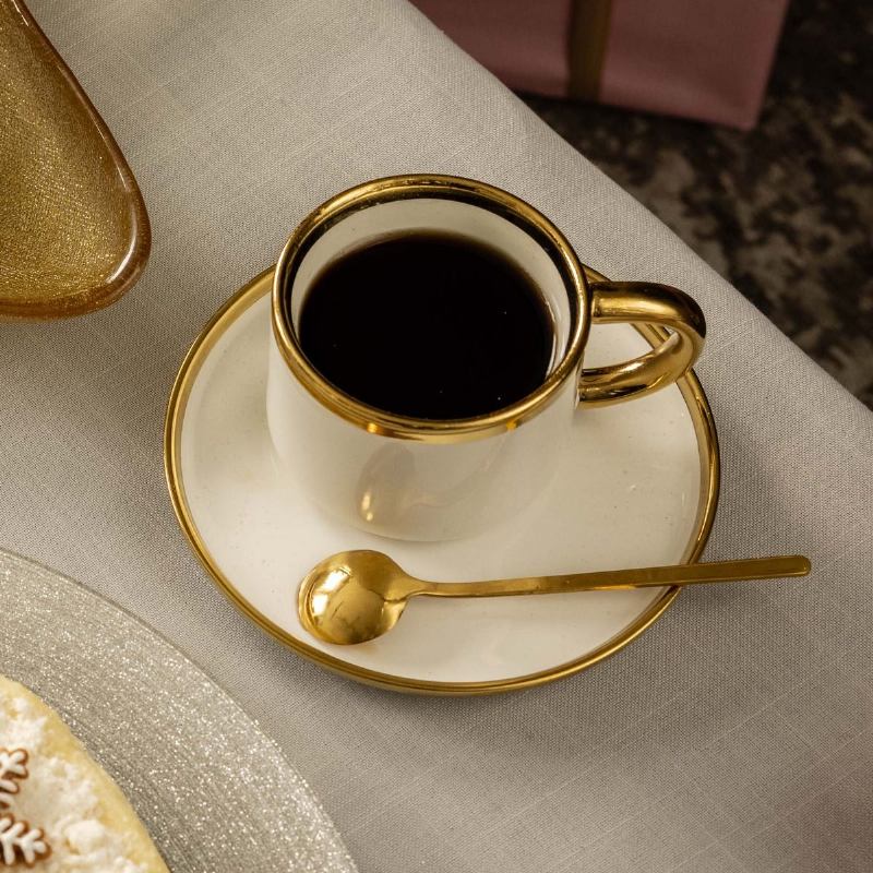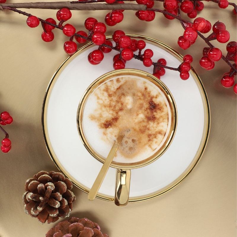 Set za kavu SINNES iz kolekcije WINTER GLAM uključuje porcelansku filiżanku, tanjurić i žličicu od nehrđajućeg čelika. Dominantna bijela boja s elegantnim zlatnim detaljima daje sofisticiran izgled, dok zaobljeni oblici osiguravaju udobno korištenje. Zahvaljujući dekorativnom dizajnu, set je idealan kao blagdanski poklon ili dodatak svečanoj stolnoj postavi.