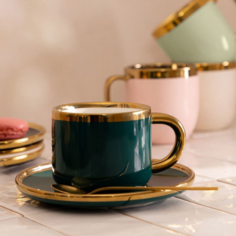 Sadržaj seta: Porcelanska šalica, tanjurić, žličica od nehrđajućeg čelika