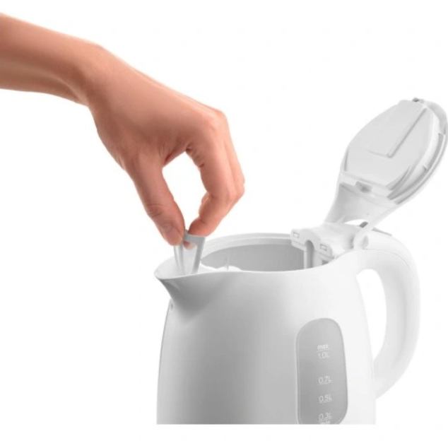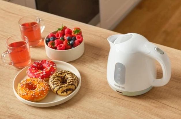 Ovaj bežični električni čajnik kapaciteta 1 litra idealan je za brzo i praktično zagrijavanje vode. Dvostrani indikator razine vode omogućuje jednostavnu kontrolu količine, dok blokada sigurnosti poklopca osigurava bezbrižno korištenje. Kontrolna lampica signalizira kada je uređaj uključen, a ergonomska ručka pruža udobnost pri korištenju.
