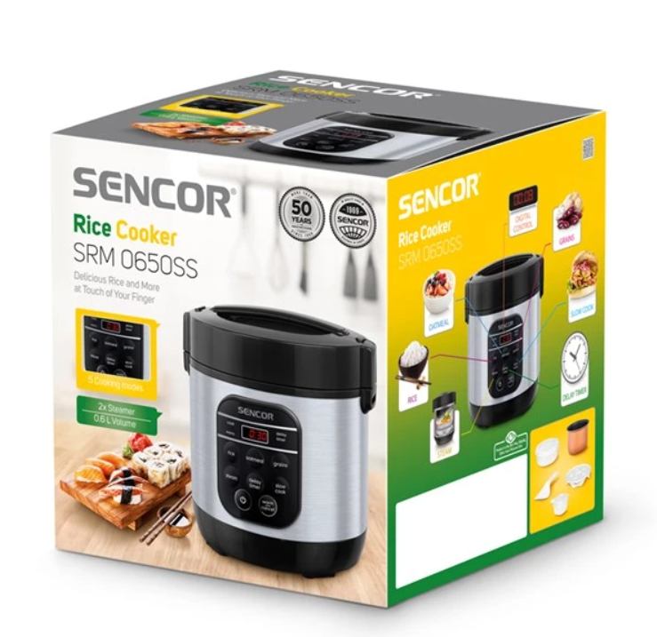 Ovo kompaktno i svestrano kuhalo za rižu nudi čak 5 posebnih načina kuhanja: riža, zobena kaša, žitarice, kuhanje na pari i sporo kuhanje. Zahvaljujući funkciji odgođenog početka i automatskom održavanju topline do 12 sati, vaši obroci će biti spremni točno kada vam odgovara – topli i svježi.