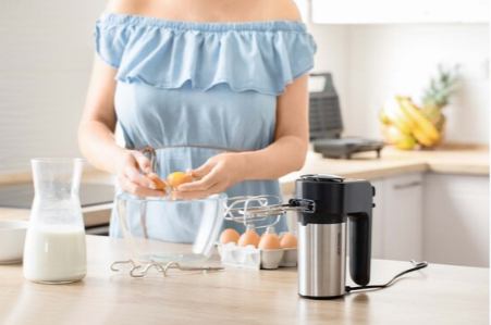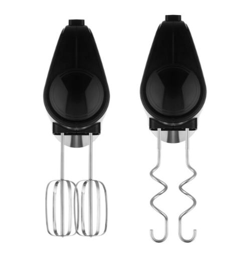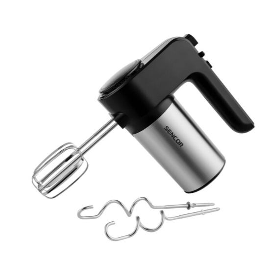 Ručna miješalica s 6 razina brzine idealna je za sve vrste recepata. Opremljena je turbo gumbom za maksimalnu brzinu i dolazi s dvije vrste nastavaka. Prvi komplet sadrži dvije mutilice od nehrđajućeg čelika za tučeno vrhnje, kreme, krumpir pire, namaze, bjelanjke i žutanjke. Drugi komplet sadrži dvije kuke za miješenje od nehrđajućeg čelika, savršene za miješenje tijesta.