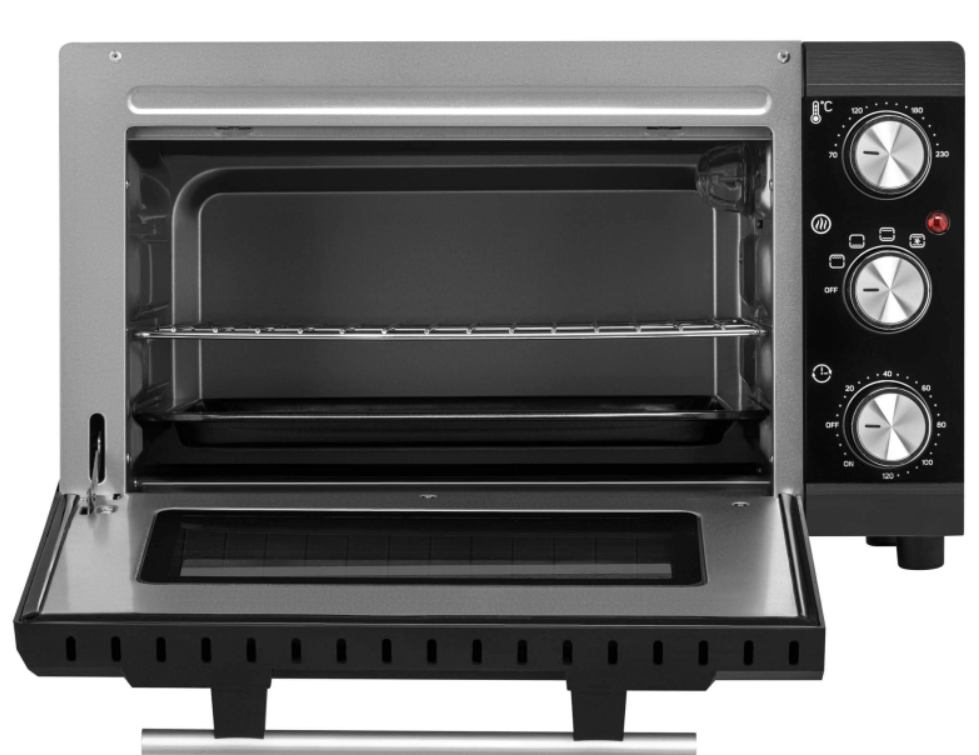 Ova višenamjenska električna mini pećnica kapaciteta 20 litara savršena je za manje kuhinje, vikendice ili kao dodatni uređaj u domu. Unatoč kompaktnim dimenzijama, nudi impresivne performanse zahvaljujući snazi od 1350–1650 W i podesivoj temperaturi od 70 do 230 °C.