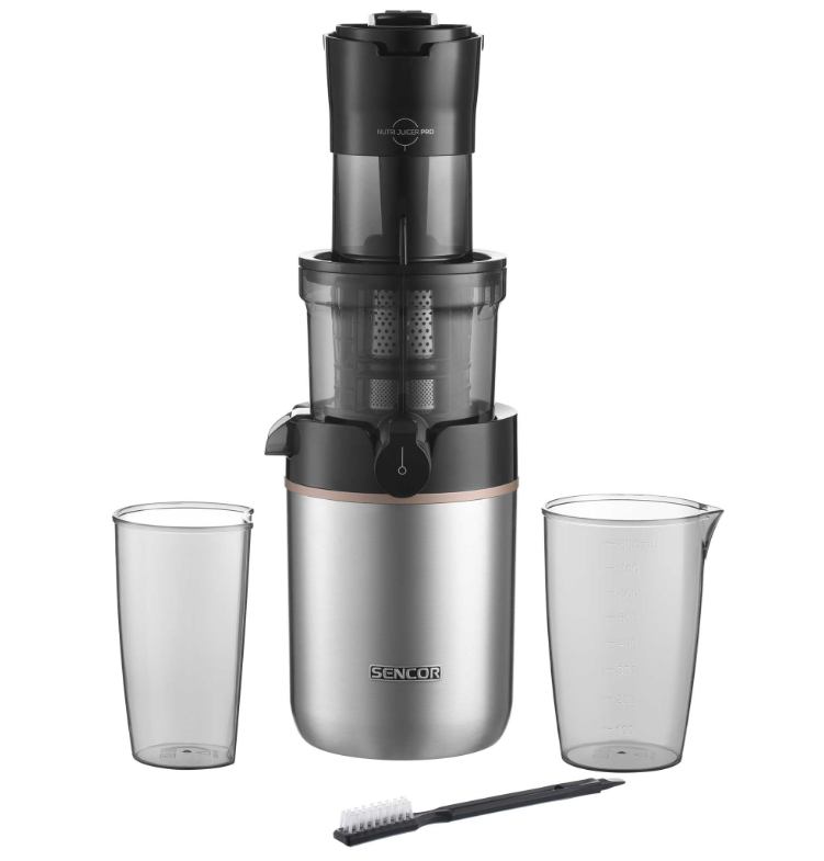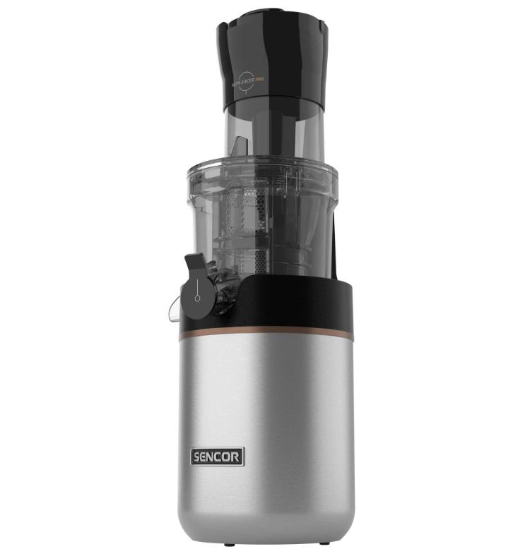 Moderan sokovnik dizajniran za maksimalnu učinkovitost i jednostavnost korištenja. Zahvaljujući snažnom i tihom istosmjernom (DC) motoru, omogućuje cijeđenje širokog spektra namirnica – od jabuka i naranči do celera i pšeničnih klica. Široka cijev promjera 78 mm omogućuje umetanje većih komada hrane bez prethodnog rezanja, dok tehnologija automatskog odvajanja pulpe osigurava čist sok bez ostataka.