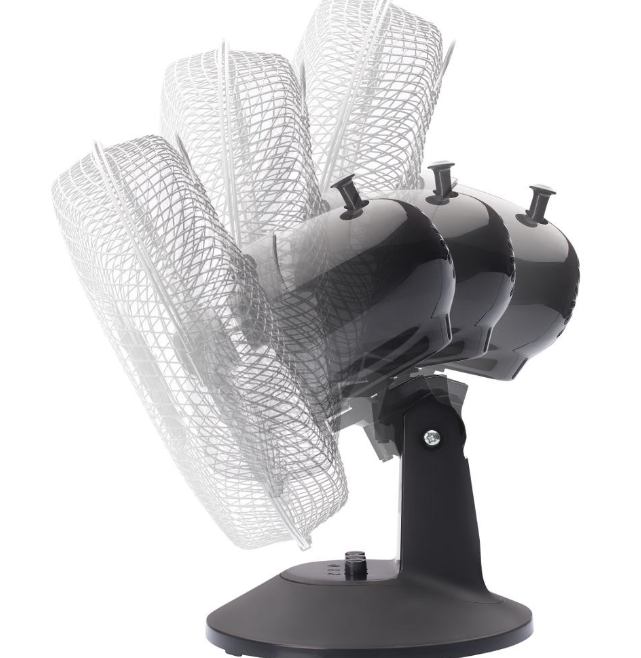 Unatoč malim dimenzijama, ovaj ventilator pruža izvrsne performanse zahvaljujući dvjema brzinama i mogućnosti automatskog horizontalnog okretanja pod kutom od 90°, koje se po potrebi može isključiti.