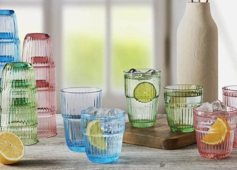 Elegantne i moderne staklene čaše u prepoznatljivoj tirkiznoj boji, idealne za svaki trenutak posluživanja. Bez obzira koristite li ih za vodu, sokove ili koktele, njihov sofisticirani dizajn unosi svježinu na stol.