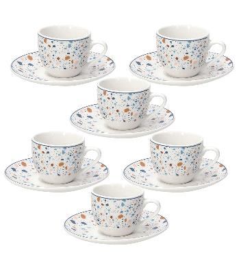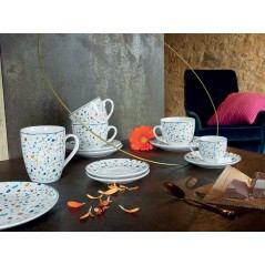 Set od 6 šalica s tanjurićem izrađen je od porculana sa terrazzo uzorkom marke Tognana. Pogodno za perilice posuđa i mikrovalne pećnice.