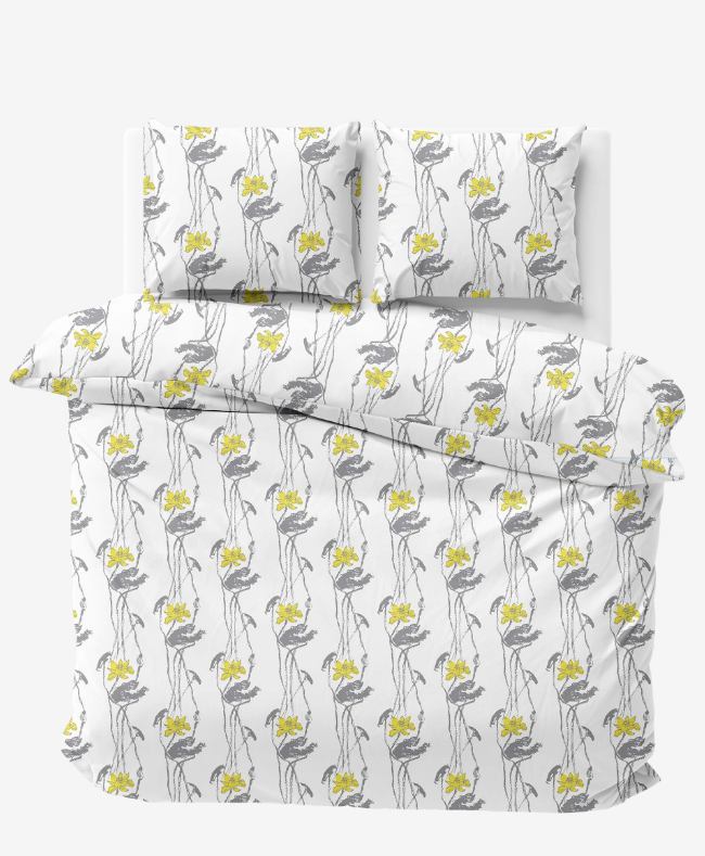Garnitura za krevet izrađena je od 100% prirodnog pamuka, što je čini izuzetno udobnom, prozračnom i nježnom prema koži. Pamuk prirodno upija vlagu i omogućuje koži da diše, pa je idealan za sve sezone. S težinom od 115 g/m², materijal je lagan, ali dovoljno izdržljiv za svakodnevnu upotrebu. Uzorak na tkanini dodaje vizualnu svježinu i eleganciju, dok luksuzno pakiranje čini ovaj set savršenim za darivanje.