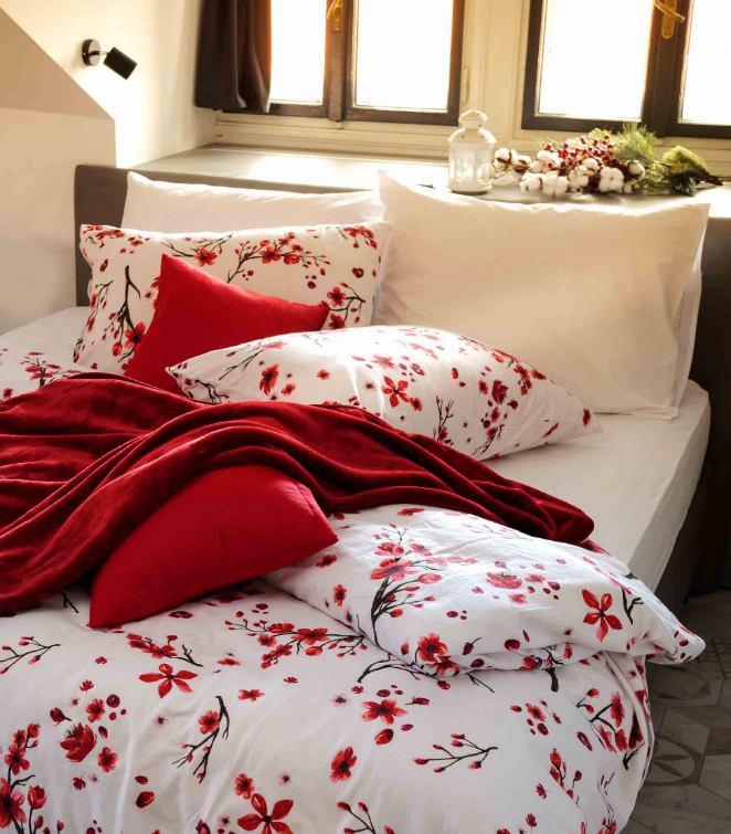 Garnitura za krevet Cvita izrađena je od flanela od 100% pamuka, savršena za udobno spavanje tijekom jesenskih i zimskih mjeseci. Mekani flanel pruža toplinu, prozračnost i ugodan osjećaj na koži, dok crvena boja posteljine s razigranim uzorkom unosi energiju i svježinu u vašu spavaću sobu.